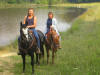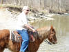 New Cabin for rent! Sean on Grumpy; Trail riding picture in the woods. Rod on Martini